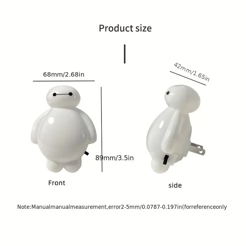 1pc Baymax Cartoon Style Night Light, Bedroom Study Light Switch, Wall Light, Direct Plug-in Electricity-saving Led Light, Creative Cute Energy-saving Light