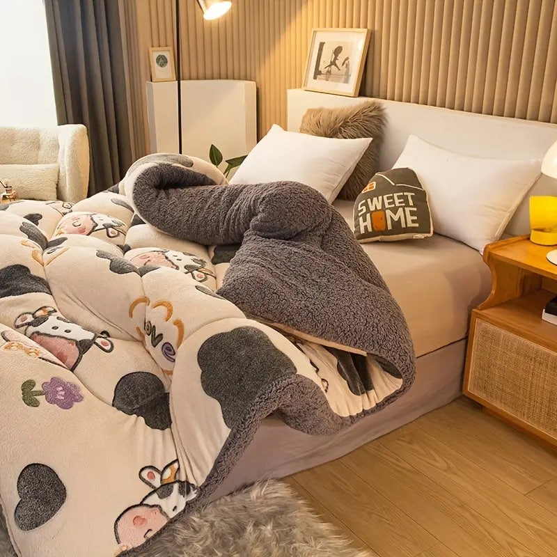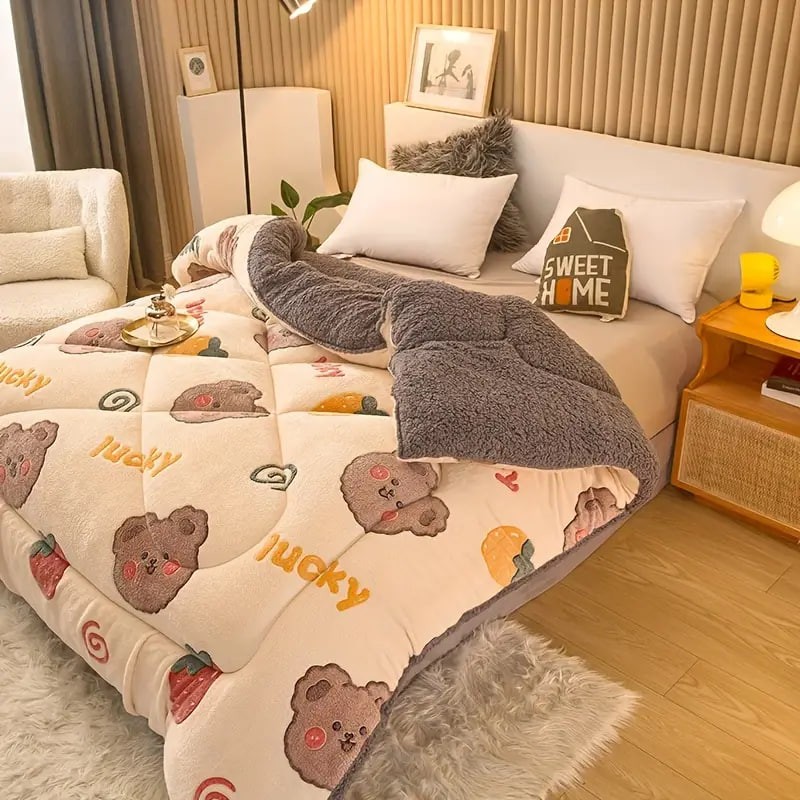 1pc Cute Print Thickened Comforter Insert - All Season Ultra Soft Breathable Velvet Comforter, Machine Washable Bedroom Warm Autumn And Winter Down Alternative Comforter