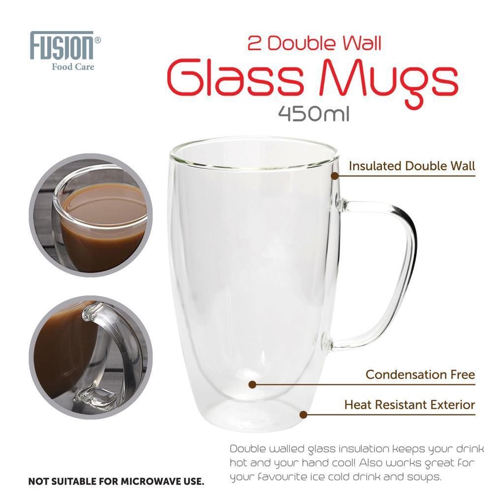 2 X Double Walled Glasses 350ML or 450ML for Latte Coffee Tea Glass Mugs Wall