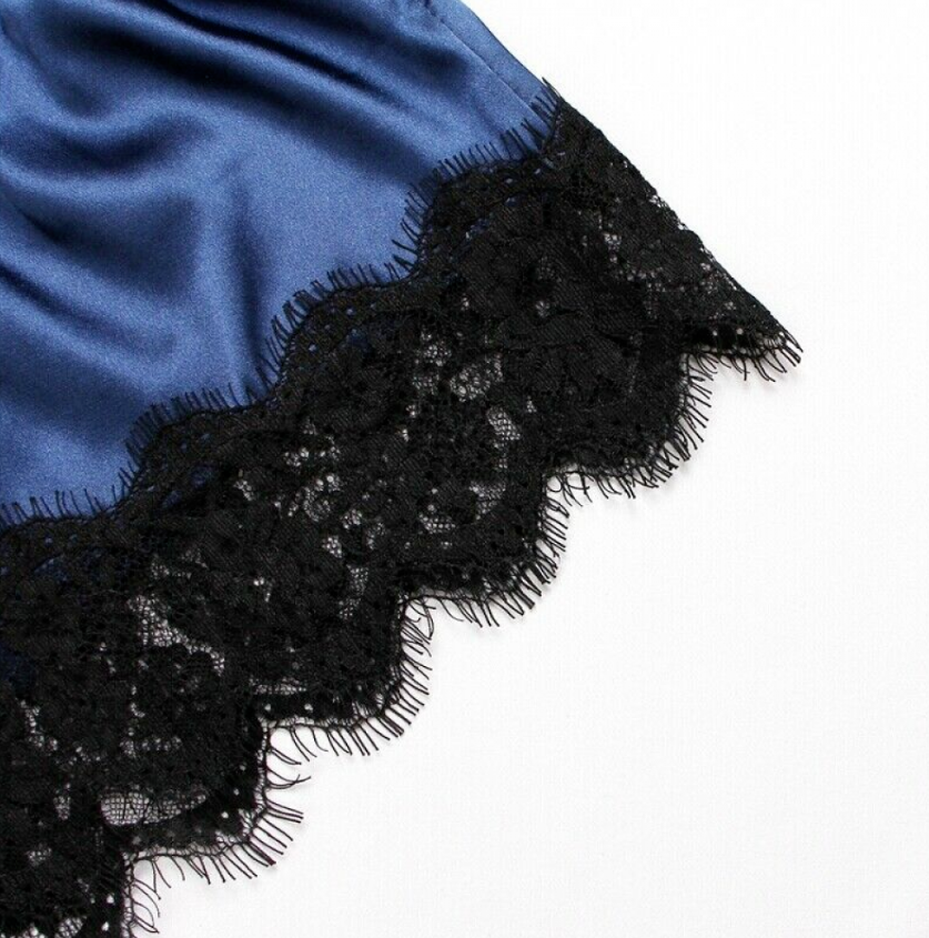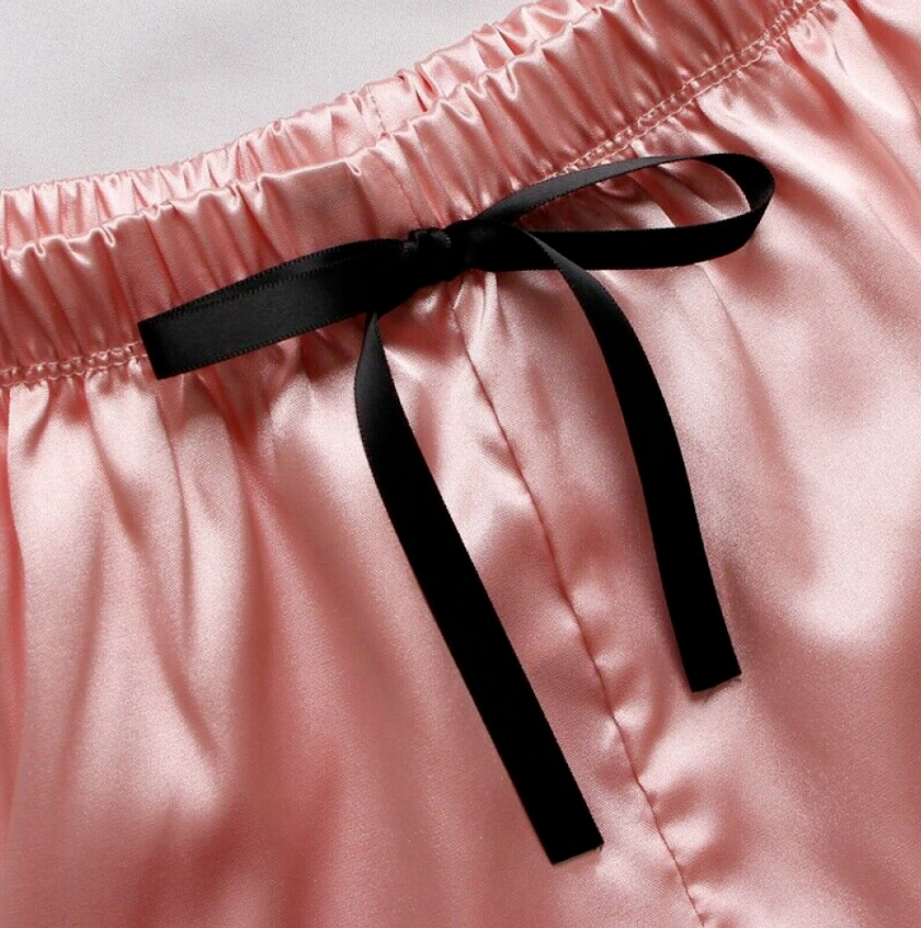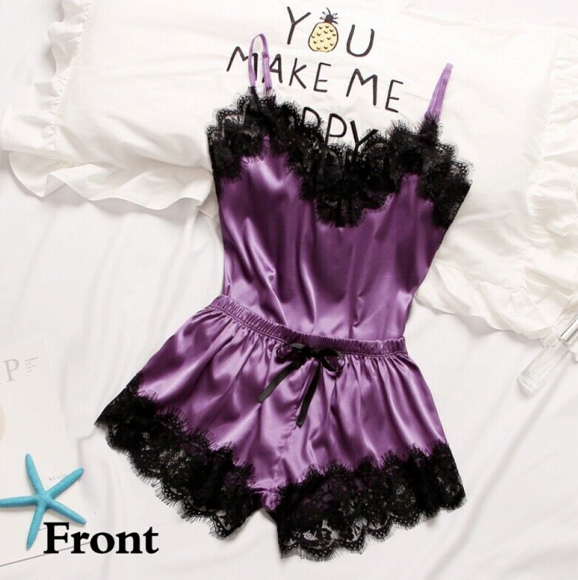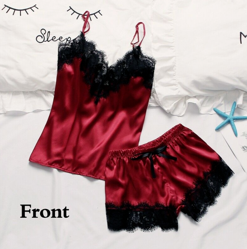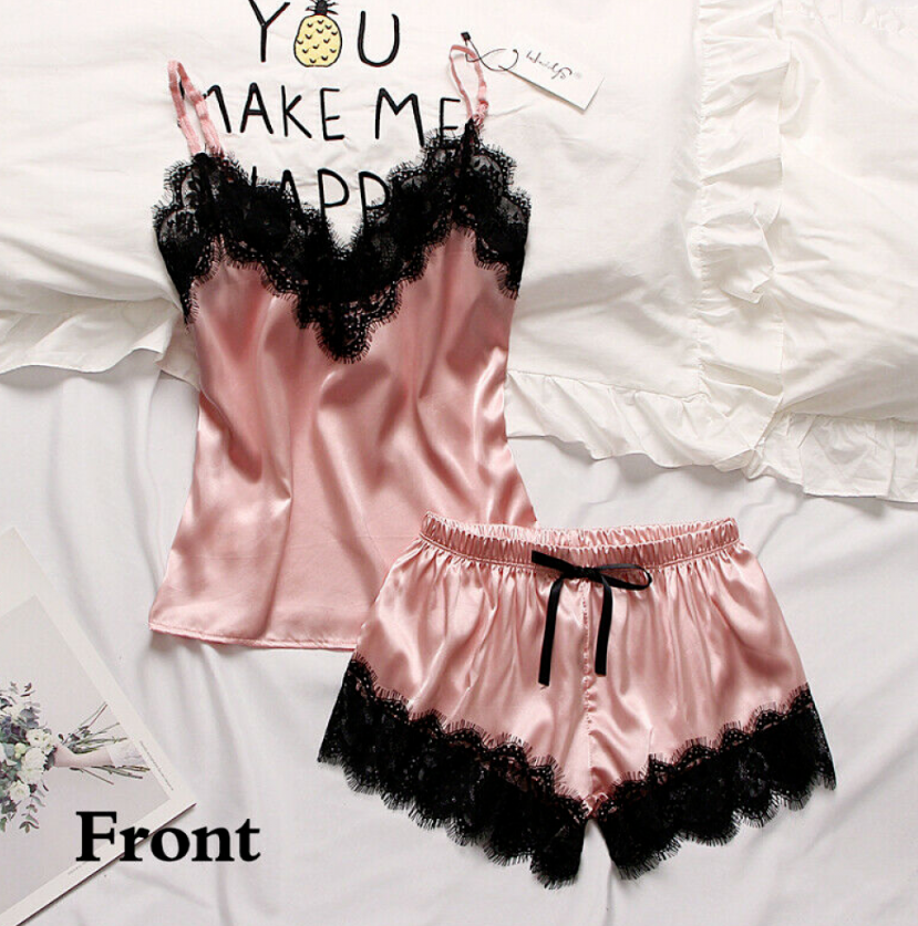2PCS Silk Pajamas Set Women Sexy Lingerie Nightwear Sleepwear Top + Short Suit