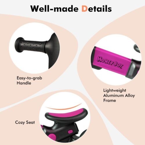 4-in-1 Kids Tricycle Foldable Toddler Balance Bike with Parent Push Handle Pink