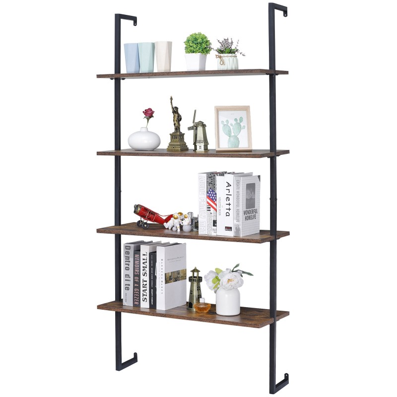 4 Tier Pipe Bookshelf Wall Mount Shelf Floating Bookcase Industrial Metal Frame