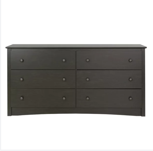 6-drawer wooden double dressing table 16 "x 59" x 29 ", Washed Black