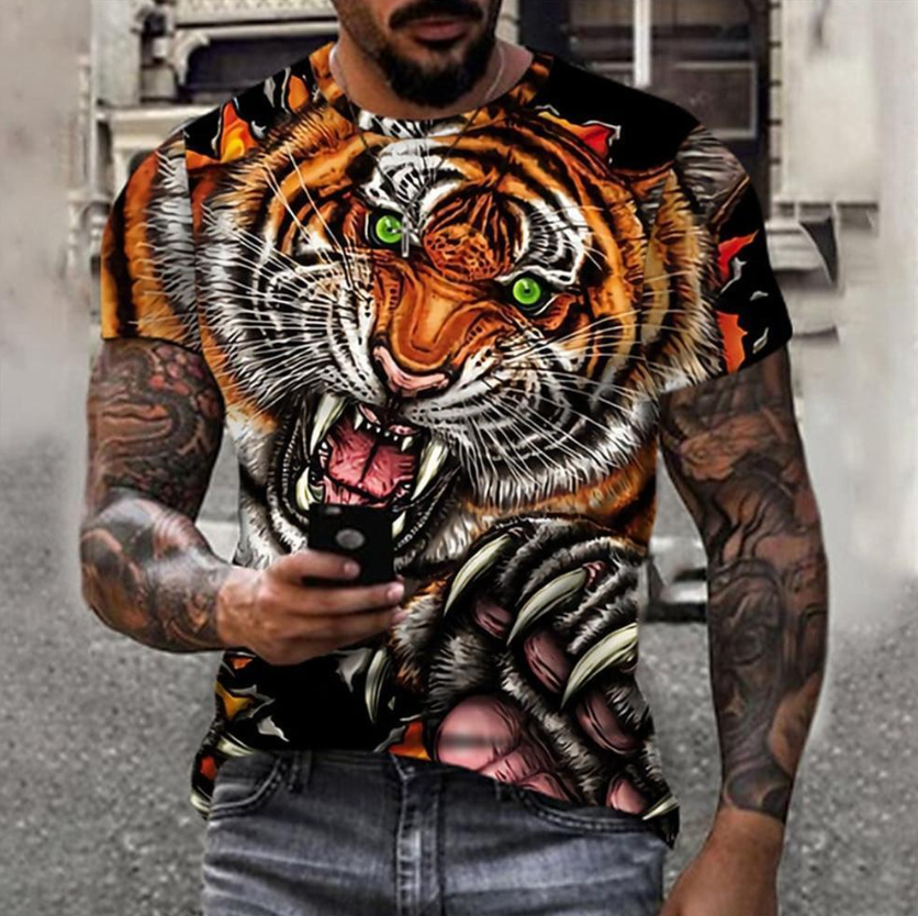 Introducing this captivating men's 3D printed t-shirt, a must-have addition to your summer wardrobe for embracing the wild and bold fashion. The lifelike 3D printed image of an animal lion makes this t-shirt stand out, adding a unique and daring statement to your summer outfits.
