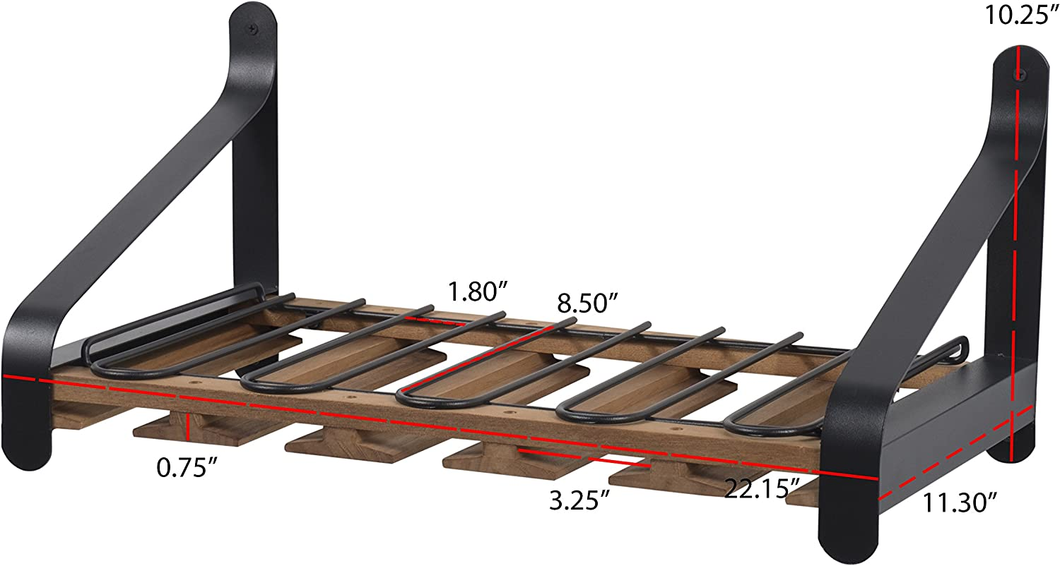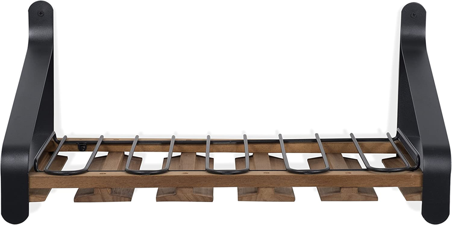 Barrel Wall Mount Wood Floating Wine Rack with Glassware Holder Stemware Shelf O