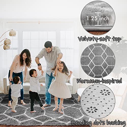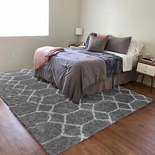 BSTLUV Fluffy Shag Rugs for Living Room6x9 Area RugGray Soft Fuzzy Rug for Be...