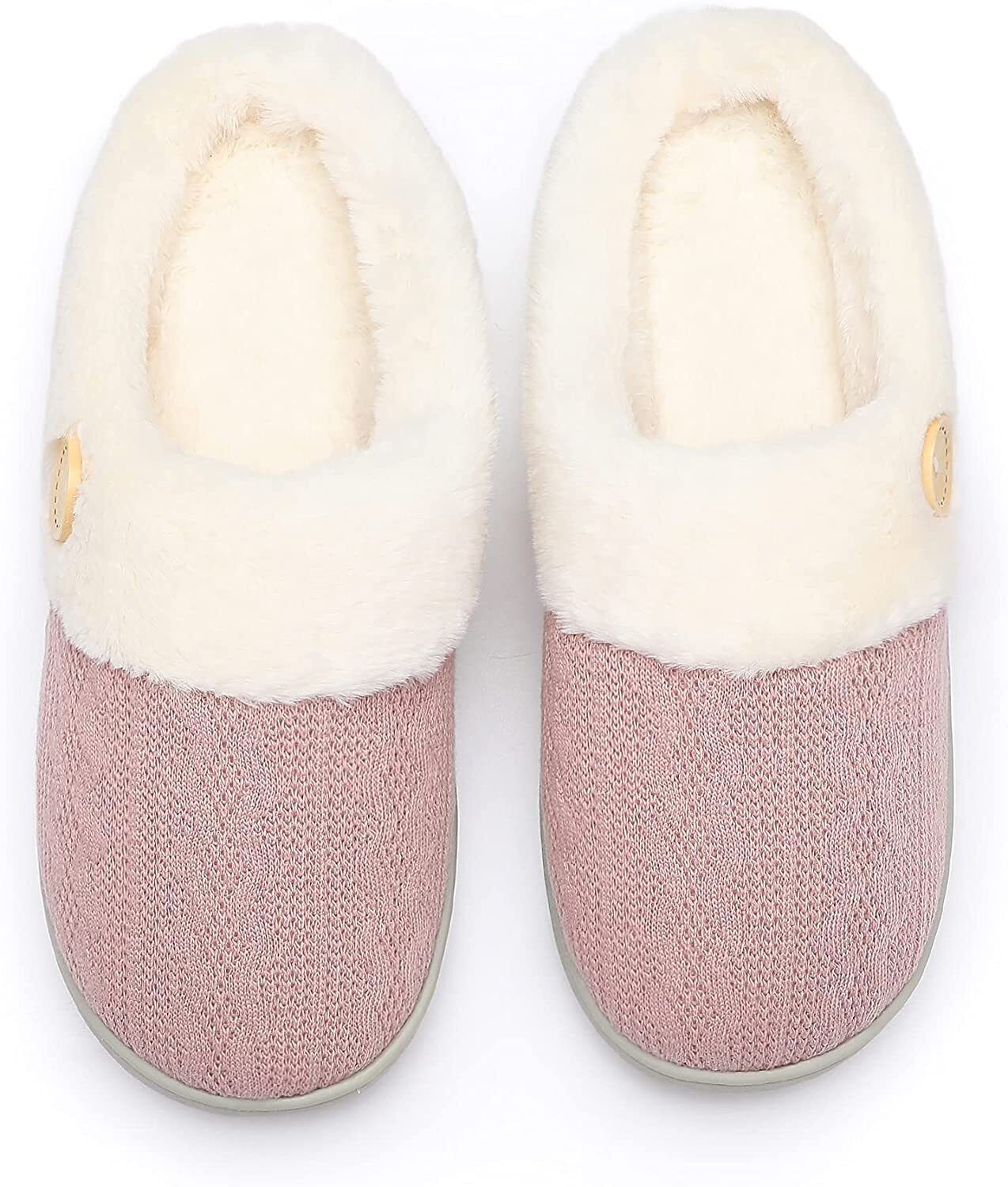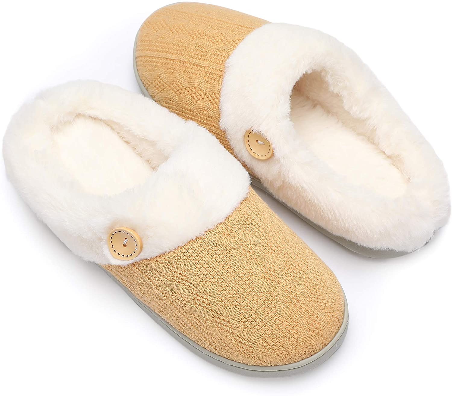 Chantomoo Womens Slipper Warm Comfy Memory Foam House Slippers Knitted Shoes Fau