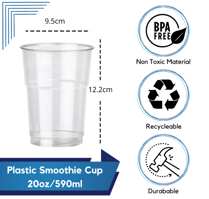 20oz (590cc) Clear Smoothie Cups and Domed or Flat Lids