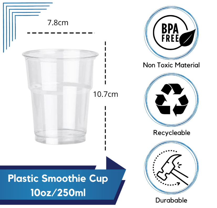 10oz (250cc) Clear Smoothie Cups and Domed or Flat Lids
