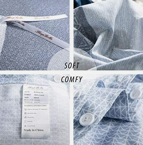 duvet cover set ★BEDDING SET INCLUDES - 1x duvet cover; 1x pillow sham. WITHOUT COMFORTER. Twin size: duvet cover (68"x 90"), Pillow shams (20"x26") ★REVERSIBLE DESIGN – Modern patchwork pattern and blue shade color, you can change the pattern of the front and back of the duvet cover by mood. A color, a mood ★SOFT & COMFORTABLE PRINTED COTTON - Slip into comfort and luxury. Our duvet cover set is made from 600 thread count cotton. Soft and comfy sense of touch always gives you a sweet sleep and accompanies you through four seasons. ★STRONG BUTTON CLOSURE- Duvet cover features stylish button closure, sewing 4 corners to keep your comforter in place. We use strong, high-quality stitching to ensure that the buttons stay firmly attached. ★EASY CARE –With the strong strength and durability, SLEEPBELLA duvet cover do not shrink, fade or tear easily, tough enough to withstand frequent washer and dryer cycles. Machine washable, and our duvet cover becomes softer after every wash. |