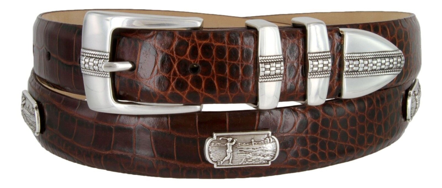 Golf of Scottsdale Men's Leather Italian Calfskin Concho Dress Belt 1-1/8" Wide