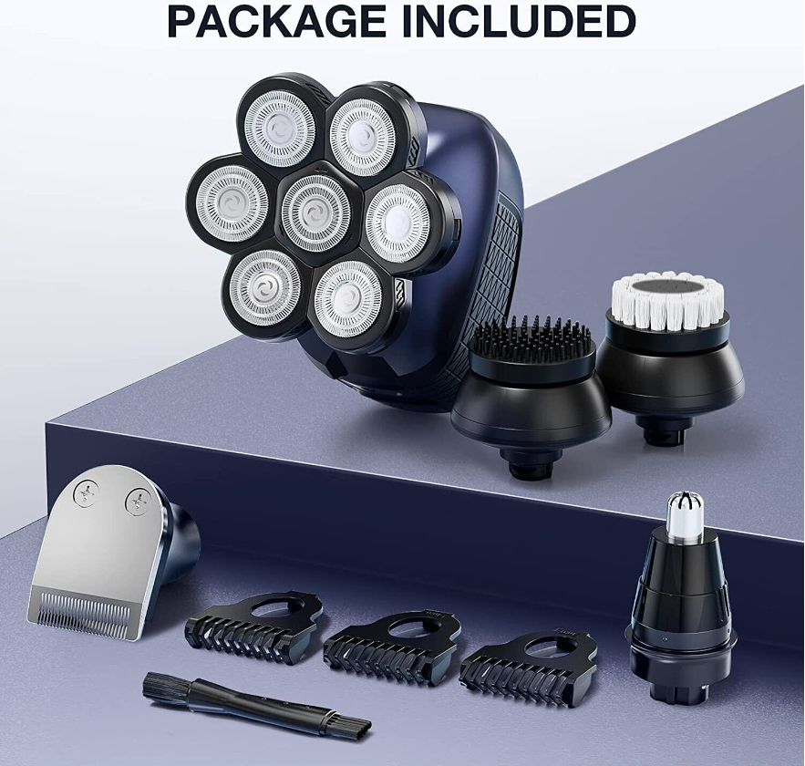 【7D Floating Shaving Head】The upgraded version of the 7D floating shaving system is ergonomically designed.The design of 7 cutter heads increases the shaving area and saves shaving time. Our shaver is designed with a non-slip handle for easy gripping, a great choice for your shaved heads.