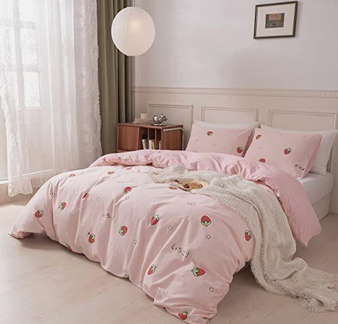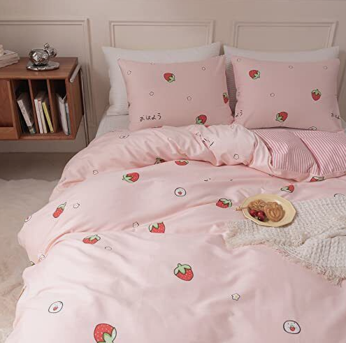 Japanese Style Duvet Cover Set Pink with Strawberry Full/Queen Cute