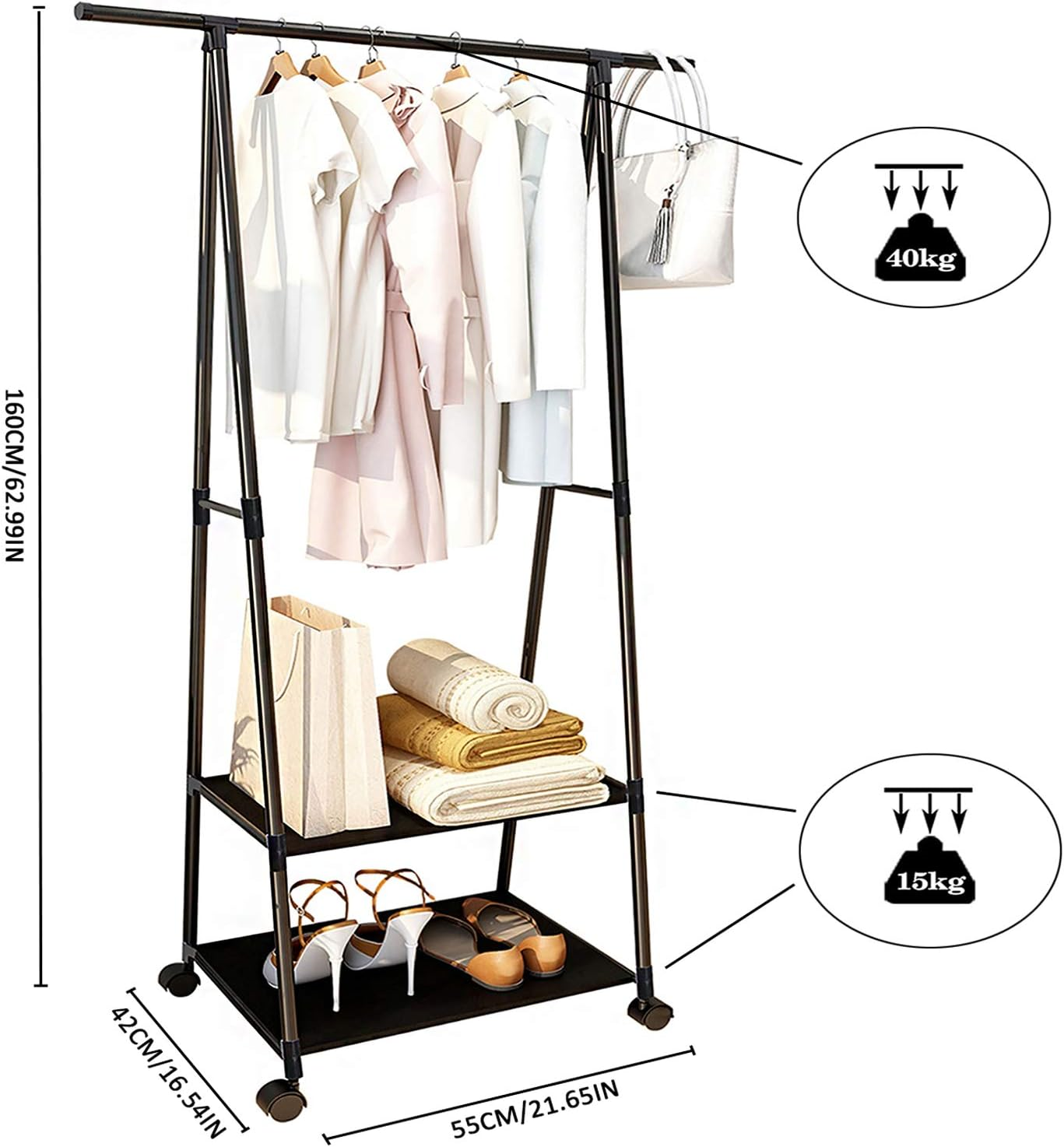 Clothing Garment Rack with Shelves Capacity 450 lbs Clothing Racks on Wheels