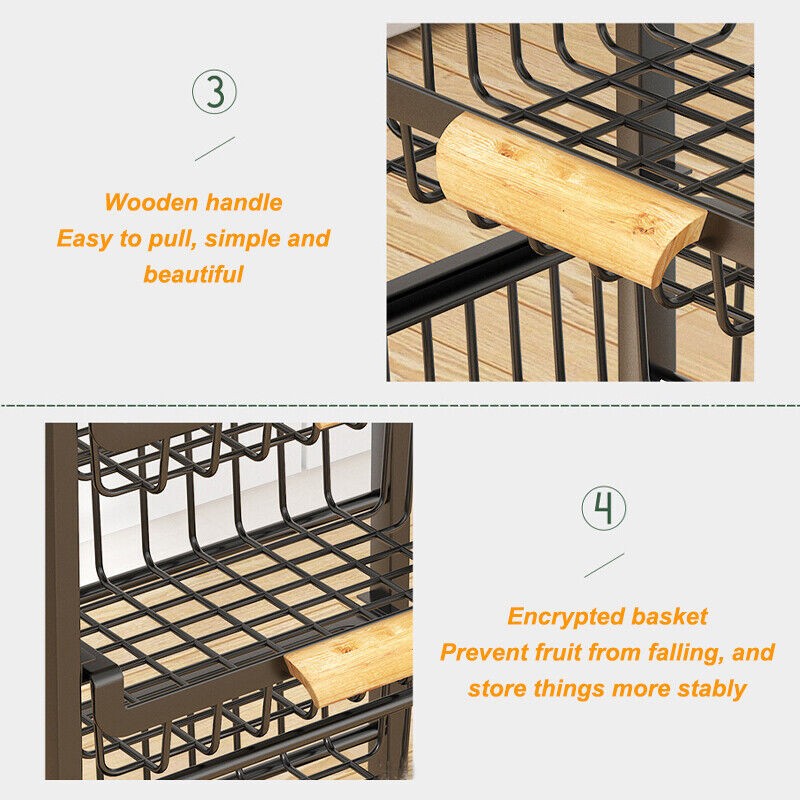 Kitchen Cart with Storage &Wheels 4 Tier Rolling Utility Cart Metal Pantry Rack