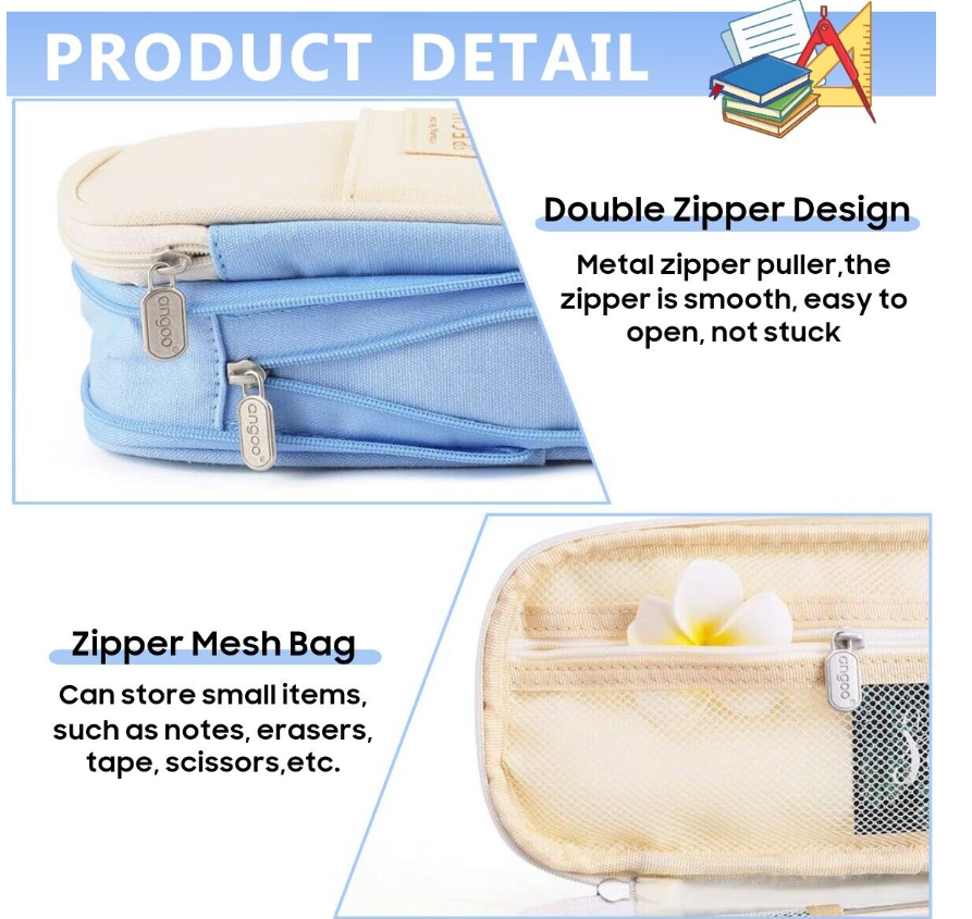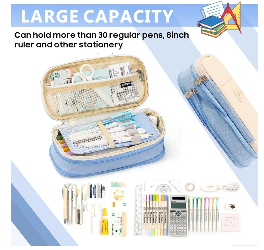 Large Capacity Pencil Case Double Open Pen Pouches Makeup Bag Storage Stationery