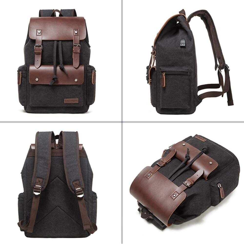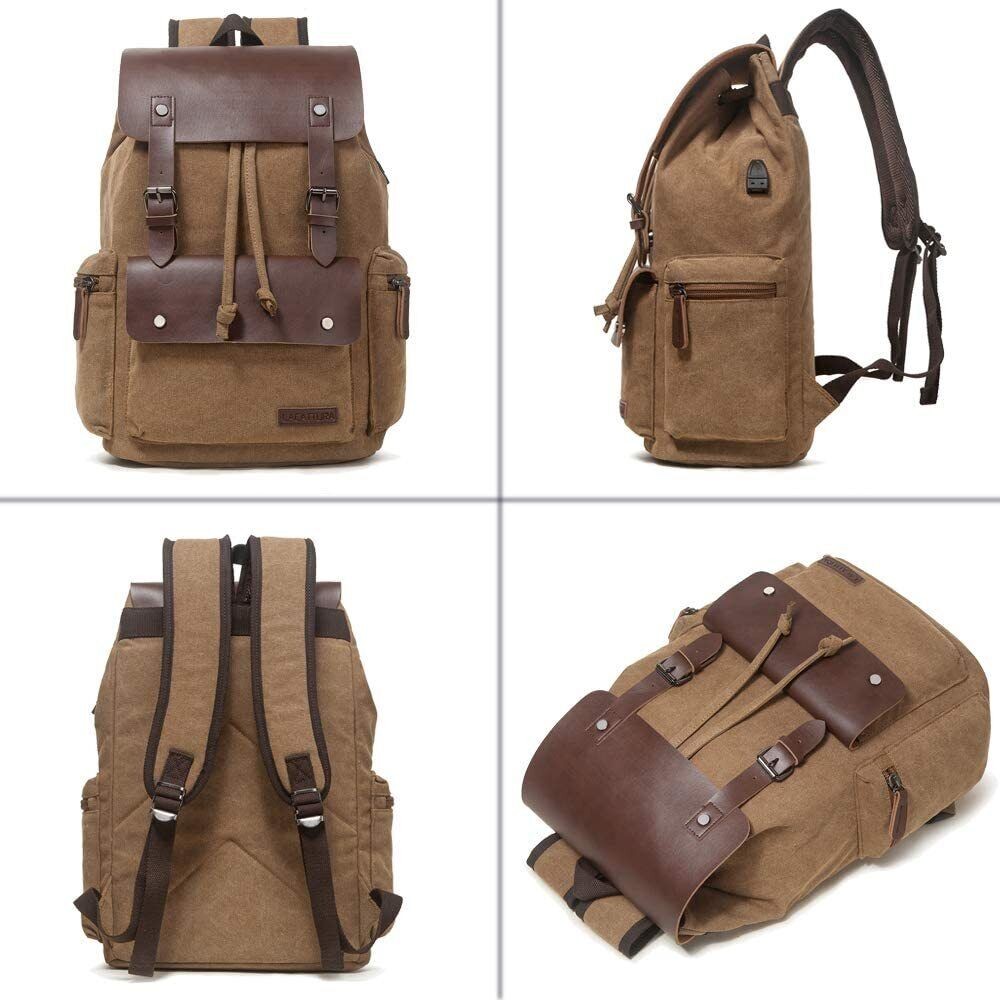 Men Vintage Leather School Travel Backpack Canvas Laptop Hiking Rucksack