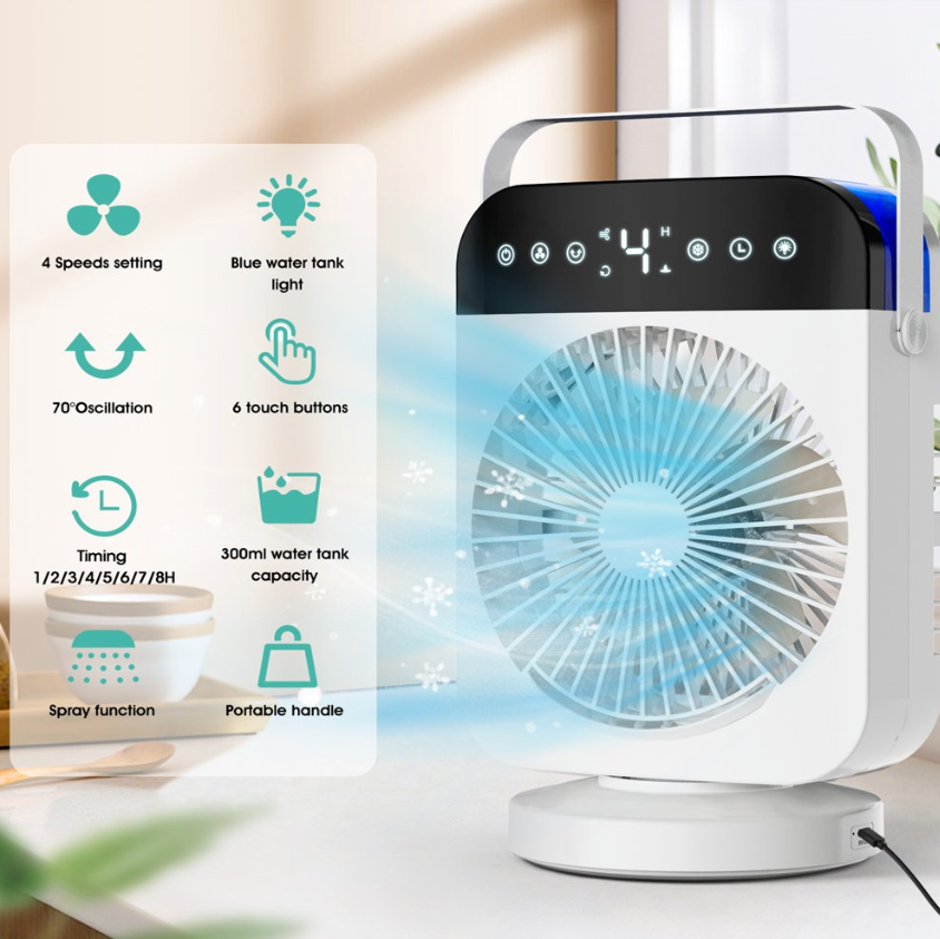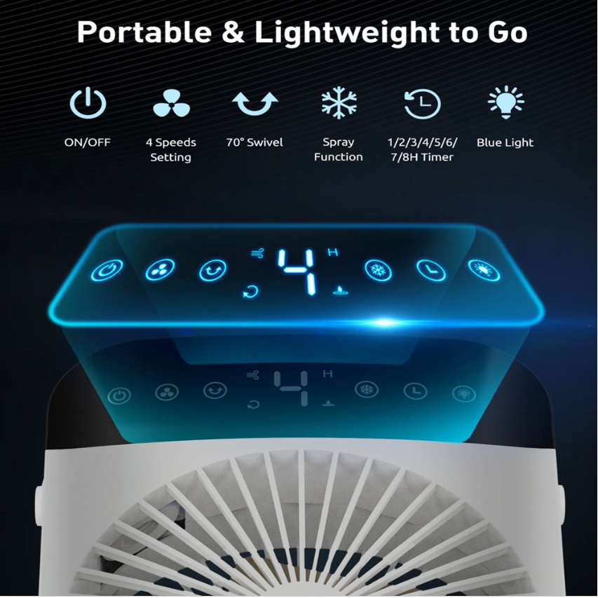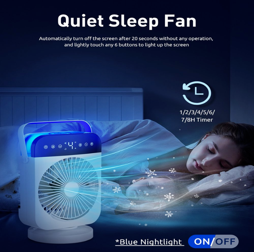 ❄Mini portable air conditioner can save your money and blows cooling wind, keeps your skin moisture and enjoy fresh air, which is very easy and portable to carry & move. It can be multifunctional as a combination of a mini air conditioner, desk fan, misting fan, night light, and humidifier.