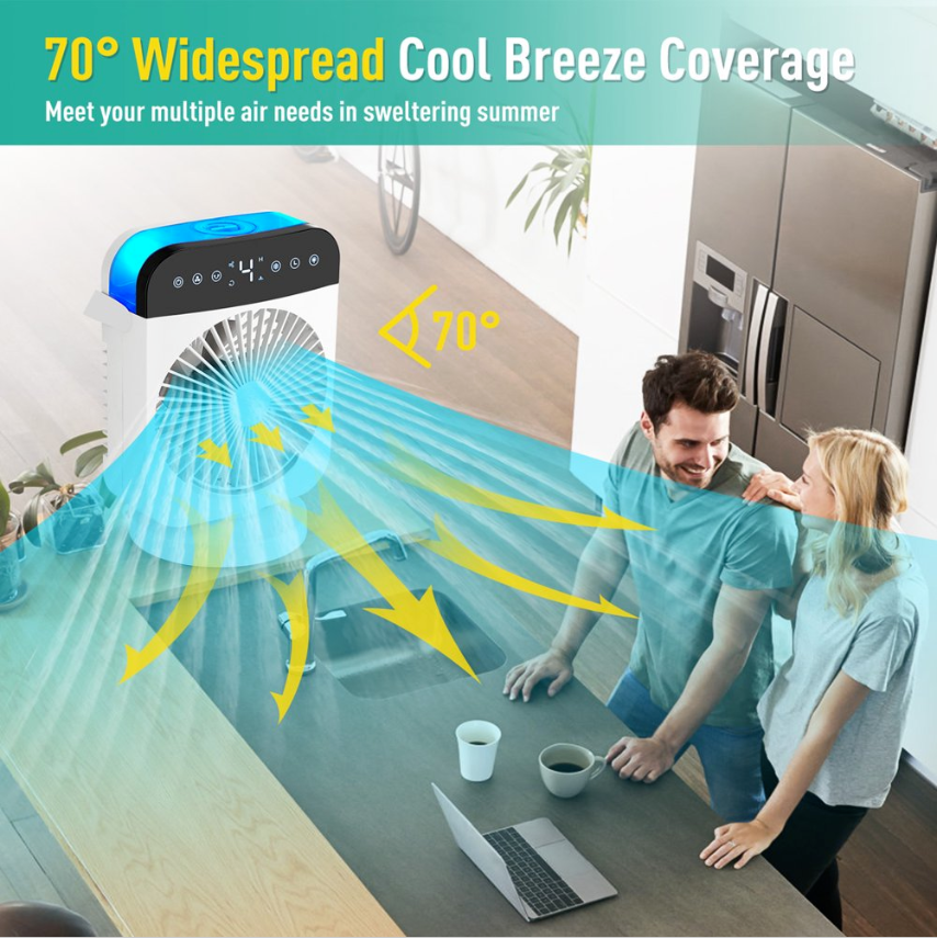 ❄Unlike the traditional air conditioner cooling the temperature with chemicals, an AITREE 10in rechargeable small evaporative air cooler is a new kind of cooler that utilizes water and turns it into mists to cool your down, That it's environmentally friendly and energy-saving. Created with a simple user-friendly design, This 4-in-1 Portable air conditioner fan is designed to create a joyful & convenient summertime for you, starts to work at the press of a single button!