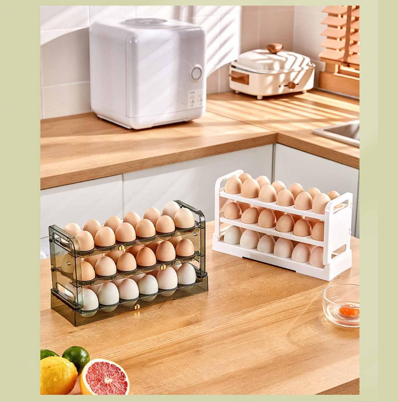Multi Layer Egg Storage Box with Handle Space Saver for Fridge Countertop