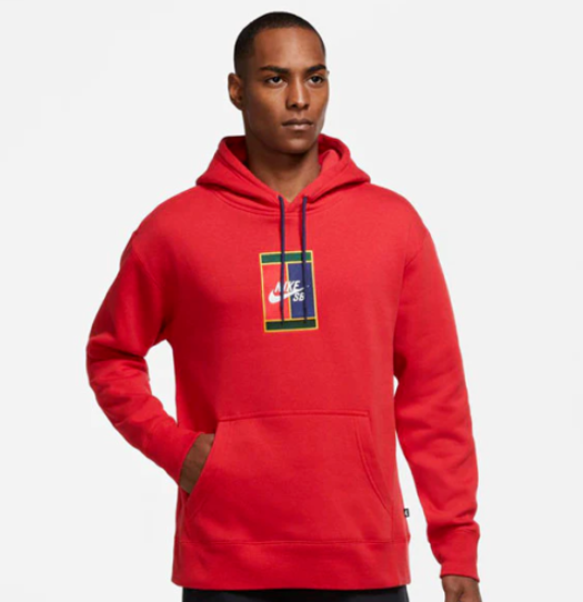 Layer up in the Nike SB Hoodie. This cozy fleece pullover superimposes the Nike SB logo over the colorful Nike Court logo for a skate spin on a heritage design.