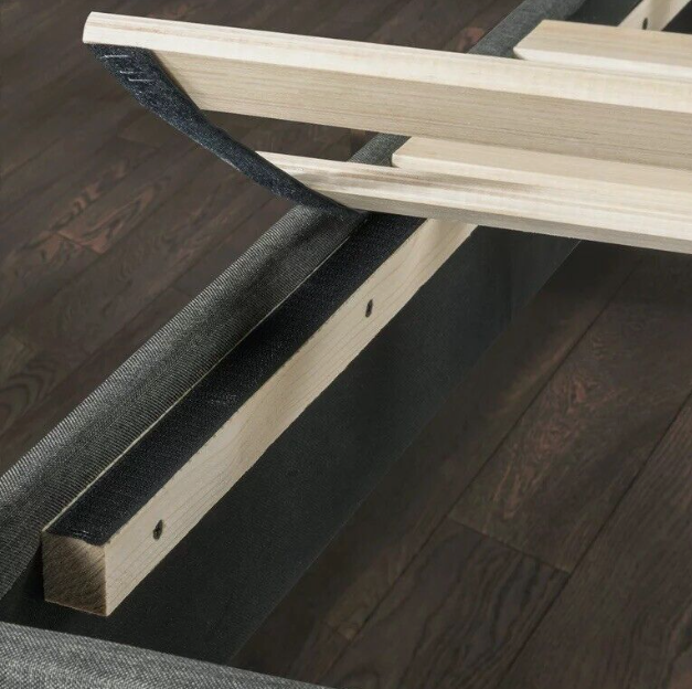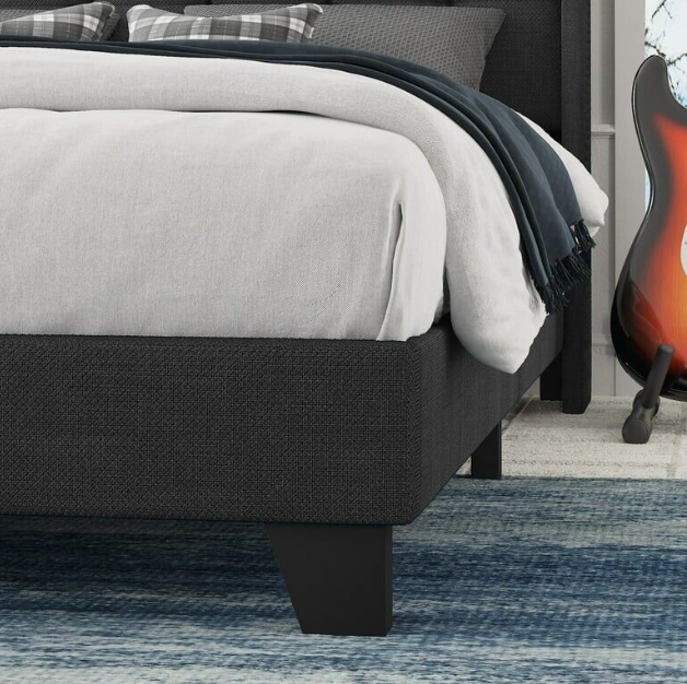 The platform bed is full of modern charm and traditional comfort. It is a bed with excellent style and soundproof mattress support. The feature of this bed frame is the wingbacks on both sides of the headboard. With equivalent wooden slats support, the platform bed frame can support the mattress without adding box springs, but please pay attention to the 10.2-inch gap between the headboard and slats, the height of your mattress should be suitable for the gap. And if you prefer the bed to be higher, you could use a box spring. Its frame is composed of a durable "+" shape sell structure and central support leg, which can eliminate sagging and extend the life of the mattress.