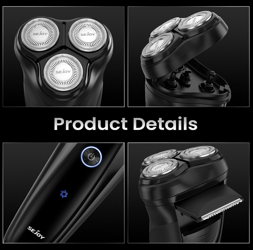 Sejoy Electric Razor for Men 3D Rotary Shaver Rechargeable Beard Pop-Up Trimmer