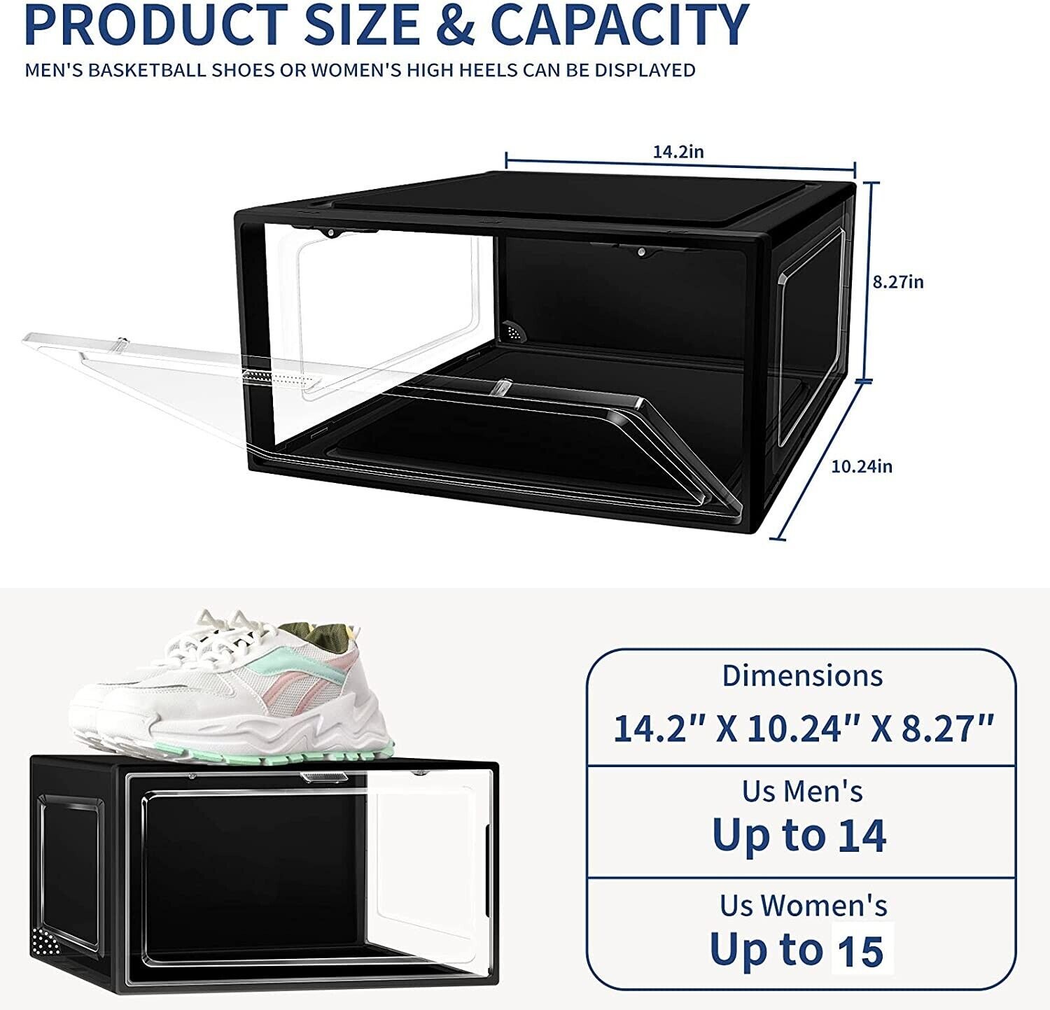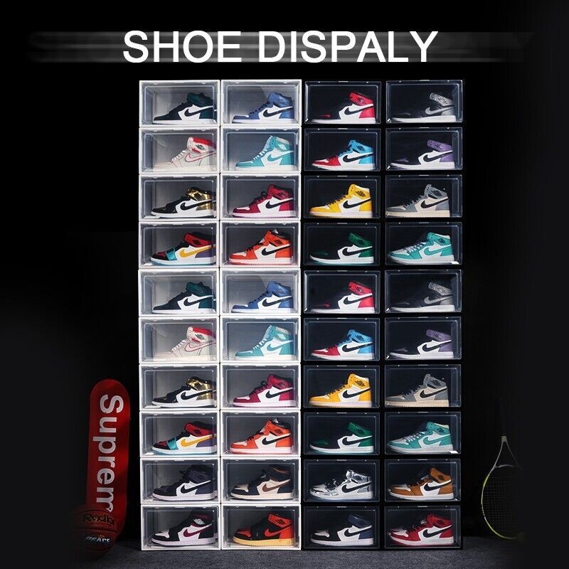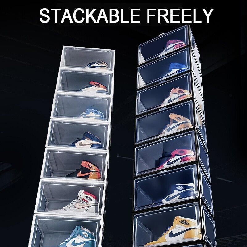 Stackable Magnetic Shoe Storage Box Organizer Sneaker Case Side/Front Container