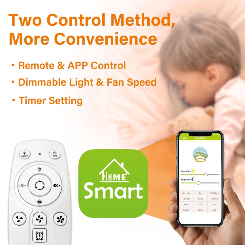 TCFUNDY LED Ceiling Fan with Light Phone APP & Remote Control Ceiling Fan Lamp