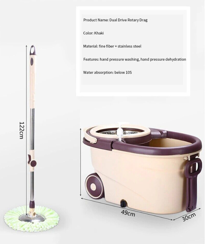 US 360° Rotating Floor Mop Bucket Set wheel with 2 Microfiber Head Cleaning Tool