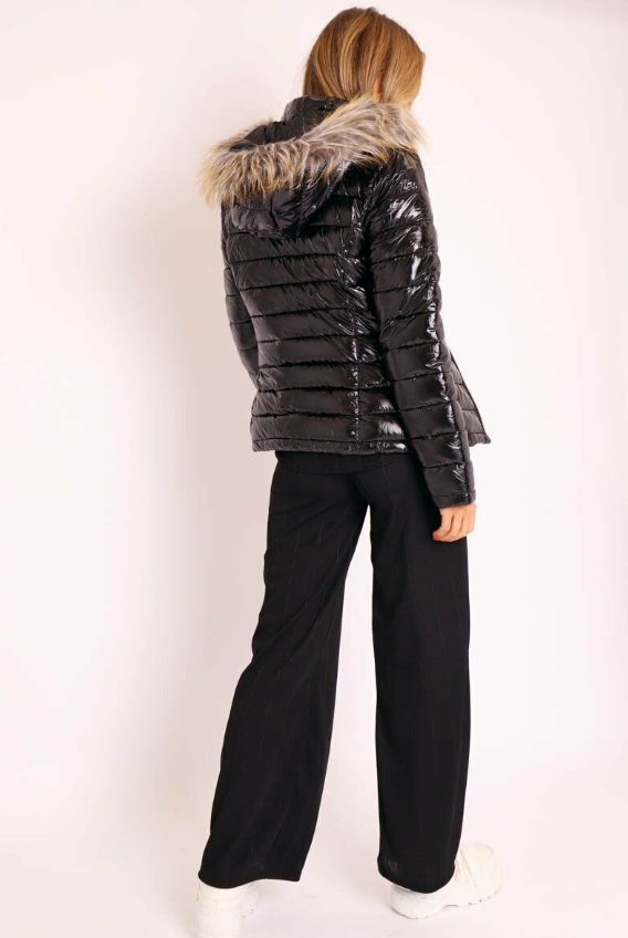 • Keep warm this winter in this Wet Look Puffer Coat. Featuring wet look fabric, puffer detailing and a fur hood - what's not to love! Style with ripped jeans and a cute jumper.