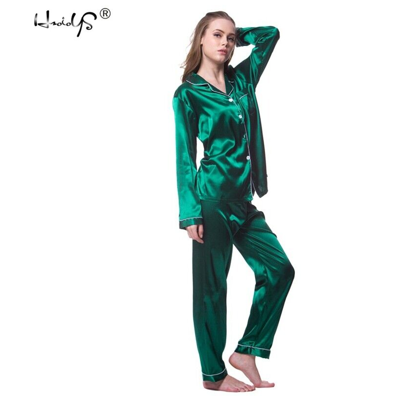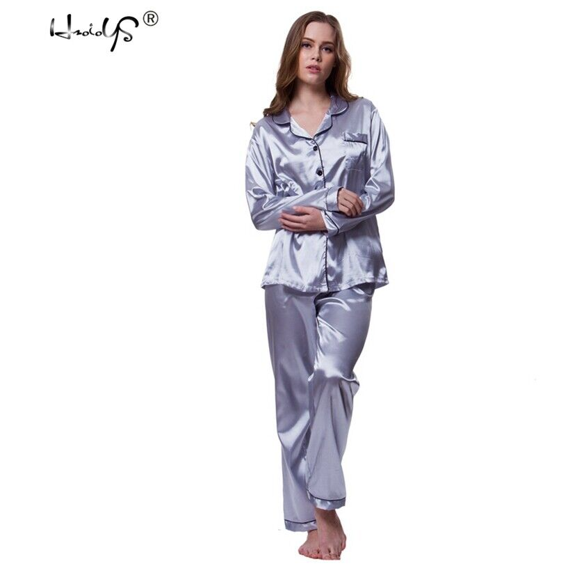 Women's Satin Pajama Set Classic Button Down Loungewear Long Sleeve Sleepwear Pj