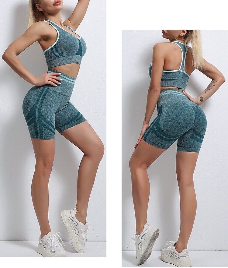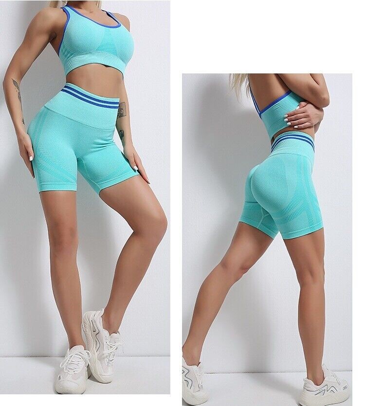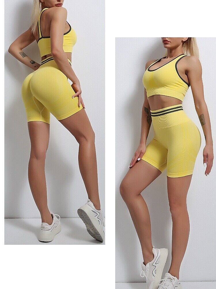 Womens Workout Yoga 2 Piece Outfits High Waist Shorts Sports Bra Gym Clothes Set